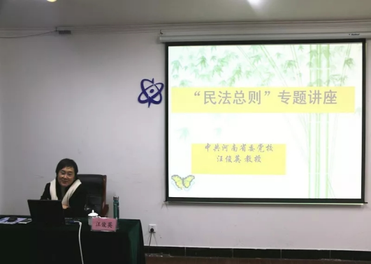 讲座中,汪俊英律师针对《民法总则》,结合自身从业经历,风趣、精彩地对《民法总则》立法背景、过程、创新与亮点进行了详细解读。汪律师结合生动鲜活的案例,围绕民事法律关系的主体、民事权利重要条款进行了讲解。